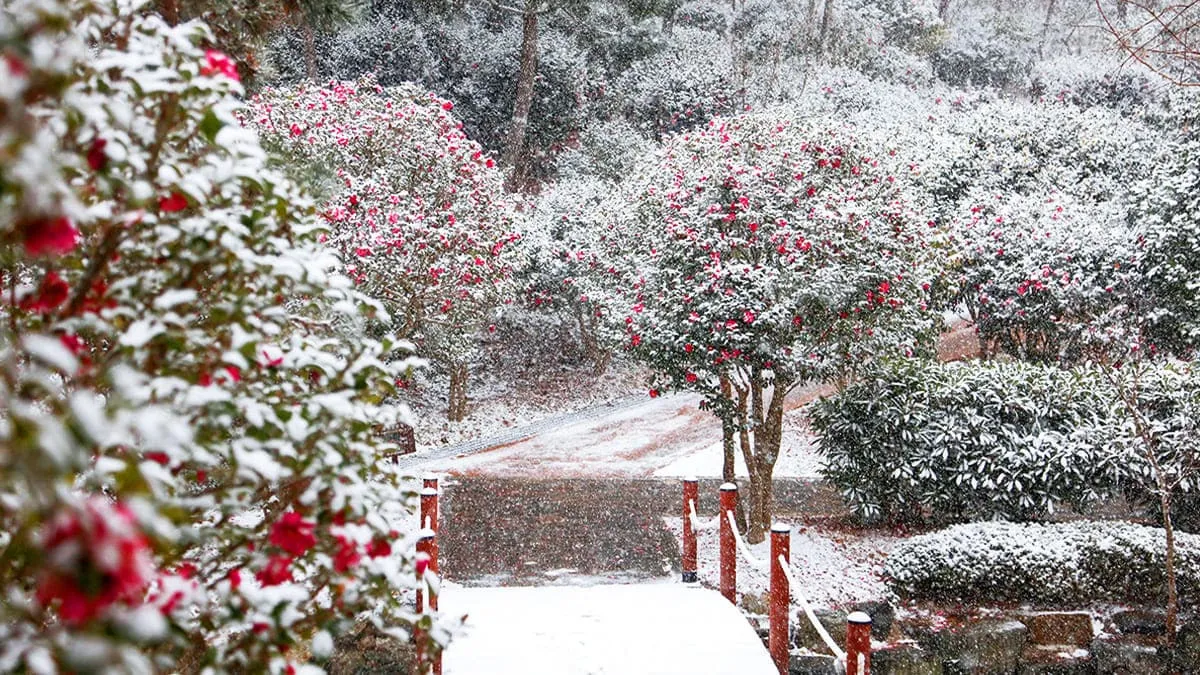신안군 압해읍 송공산 자락에 위치한 ‘1004섬 분재정원’이 겨울 여행객들의 발길을 붙잡고 있다. 이곳은 현재 애기동백 2만 그루가 일제히 꽃망울을 터뜨리며 섬 전체를 붉게 물들이고 있다. 총연장 3km에 달하는 탐방로는 말 그대로 ‘꽃길’이다. 머리 위로는 붉은 꽃송이가 터널을 이루고 바닥에는 떨어진 꽃잎들이 레드카펫처럼 깔려 걷는 내내 탄성을 자아낸다. 일반적인 동백이 꽃송이째 툭 떨어지는 것과 달리, 애기동백은 꽃잎이 한 장씩 흩날리며 떨어져 눈이 내리는 듯한 몽환적인 분위기를 연출하는 것이 특징이다. 이 때문에 사진 동호인들 사이에서는 ‘겨울철 필수 출사지’로 꼽힌다.