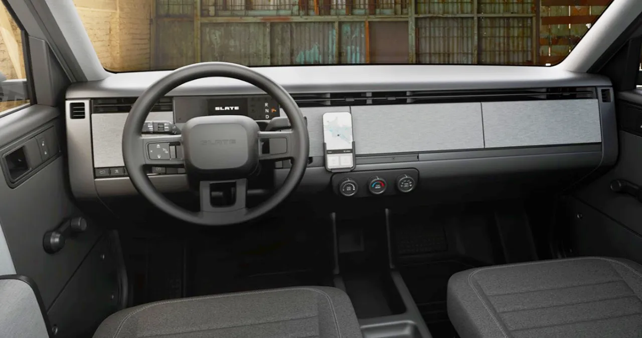 최신 전기차들이 거대한 디스플레이와 화려한 디지털 기능으로 경쟁하는 것과 달리, 슬레이트 트럭은 정반대의 길을 걷는다. 기본 사양에는 도장, 라디오, 심지어 고정형 디스플레이조차 없다. 실내는 직물 시트와 단순한 다이얼, 스마트폰 거치대만으로 간결하게 구성했다.