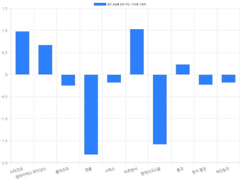 엠와이엑스 파이낸스 역시 주목할 만한 상승세를 보이고 있다. 24시간 동안 20.92% 상승하여 현재 8794원에 거래 중이며, 1시간 등락률은 0.67%로 상승세가 다소 둔화되었으나 여전히 긍정적 흐름을 유지하고 있다. 24시간 거래량은 3271억 6028만 원에 달하며, 시가총액은 1조 8125억 원으로 75위에 랭크되어 있다.