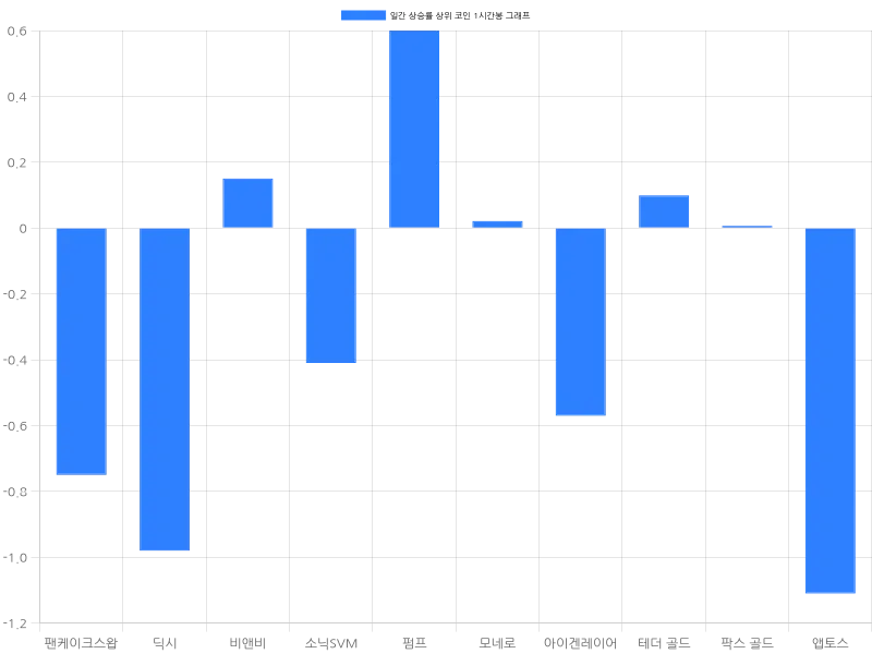 시가총액 92위의 소닉SVM은 24시간 동안 5.66% 상승하며 421원에 거래되고 있다. 1시간 동안 -0.41% 하락하며 단기 조정 국면에 접어든 것으로 보인다. 펌프는 24시간 동안 3.48% 상승하며 9.09원에 거래되고 있으며, 1시간 동안 0.60% 상승해 단기 상승세를 이어가고 있다.