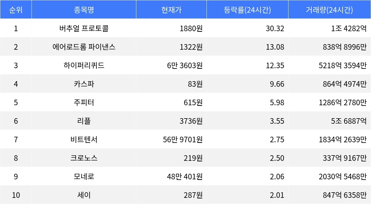 버추얼 프로토콜은 블록체인 기반의 스마트 계약 플랫폼으로, 최근 급격한 거래량 증가와 함께 가격이 상승하고 있다. 에어로드롬 파이낸스는 디파이(DeFi) 플랫폼으로, 다양한 금융 서비스를 제공하며 투자자들의 관심을 받고 있다. 카스파는 블록체인 네트워크의 보안성과 효율성을 개선하기 위해 개발된 암호화폐로 주목받고 있다.