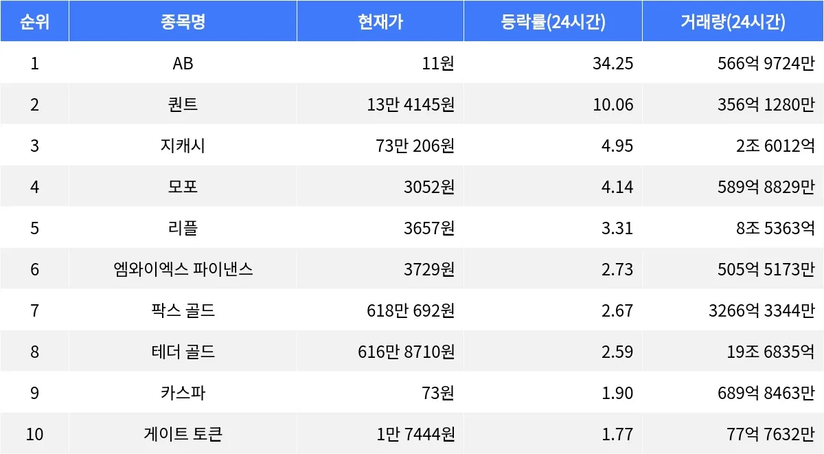 AB는 최근 강력한 상승세를 보이며 주목받고 있다. 이러한 급등세는 단기 투자자들의 관심을 끌고 있으며, 거래량의 증가가 상승 추세를 뒷받침하고 있다. 반면, 퀀트는 안전한 블록체인 간의 상호 운용성을 목표로 하는 프로젝트로, 최근의 상승세는 이러한 기술적 강점에 대한 시장의 긍정적인 반응을 반영하고 있다. 지캐시는 프라이버시 보호 기능을 강화한 암호화폐로, 보다 안전한 거래를 원하는 사용자들 사이에서 인기를 얻고 있는 것으로 보인다.
