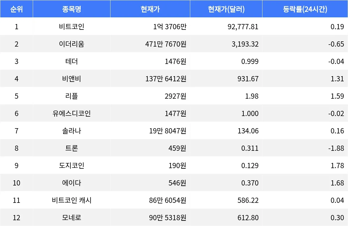 한편, 이더리움은 현재 471만 7670원에 거래되며 0.65% 하락했다. 이더리움은 스마트 계약 기능을 갖춘 블록체인 플랫폼으로, 다양한 탈중앙화 애플리케이션을 지원한다. 24시간 거래량은 32조 1075억원이다.