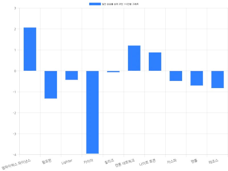 캔톤 네트워크는 24시간 동안 2.97% 상승하며 230원에 거래되고 있으며, 1시간 등락률은 1.21%로 단기 상승세를 보이고 있다. 나이트 토큰은 2.12% 상승하여 85원에 거래되고 있으며, 1시간 동안 0.88% 상승해 긍정적인 흐름을 유지하고 있다. 카스파는 1.75% 상승하며 59원에 거래되고 있고, 1시간 등락률은 -0.48%로 약간의 조정을 겪고 있다. 맨틀은 1.72% 상승해 1305원에 거래되고 있으며, 1시간 등락률은 -0.70%로 하락세를 보인다. 테조스는 1.46% 상승하며 현재 841원에 거래되고 있으며, 1시간 등락률은 -0.82%로 하락했다.