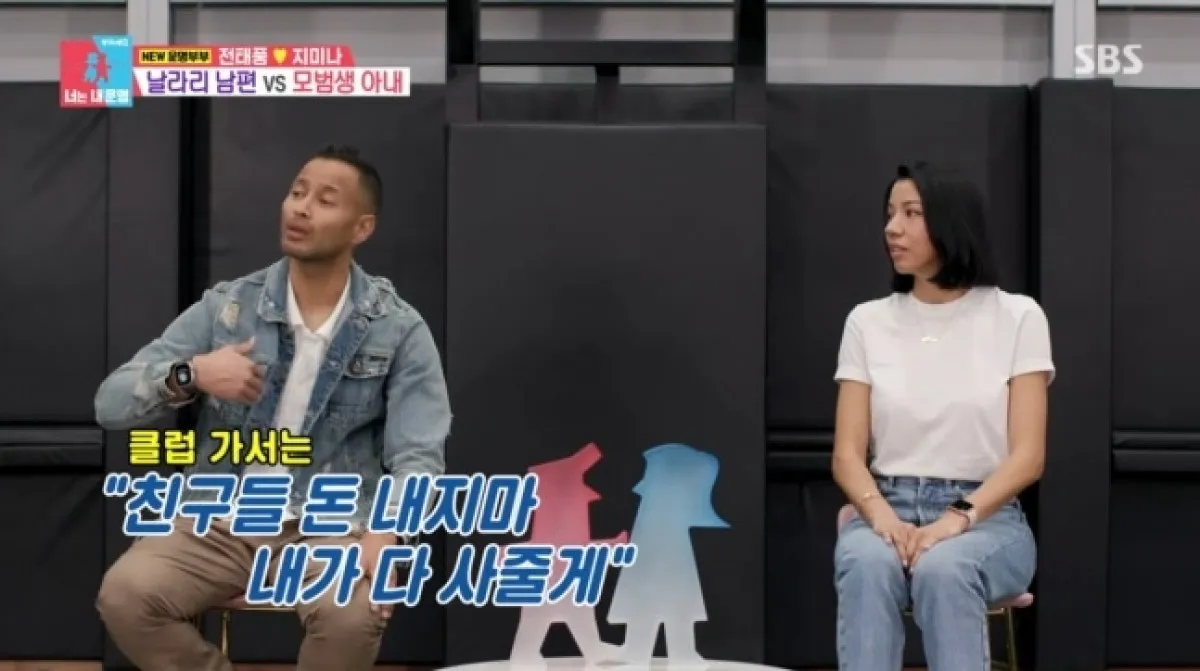 전태풍은 “미국에서 캐딜락 고급 스포츠유틸리티차량(SUV)을 대출 없이 현금 일시불로 질렀다”며 “솔직히 여자를 꼬시고 싶어서 샀다”고 털어놨다. 이는 가정적인 이미지를 기대했던 시청자들에게는 다소 당혹스러운 고백이었다. 반면 그의 아내 지미나 씨는 미국 명문대를 졸업하고 한국에서 유명 어학원의 영어 일타강사로 활동했던 엘리트 재원으로 알려져, 두 사람의 극명하게 다른 성향이 더욱 부각됐다.